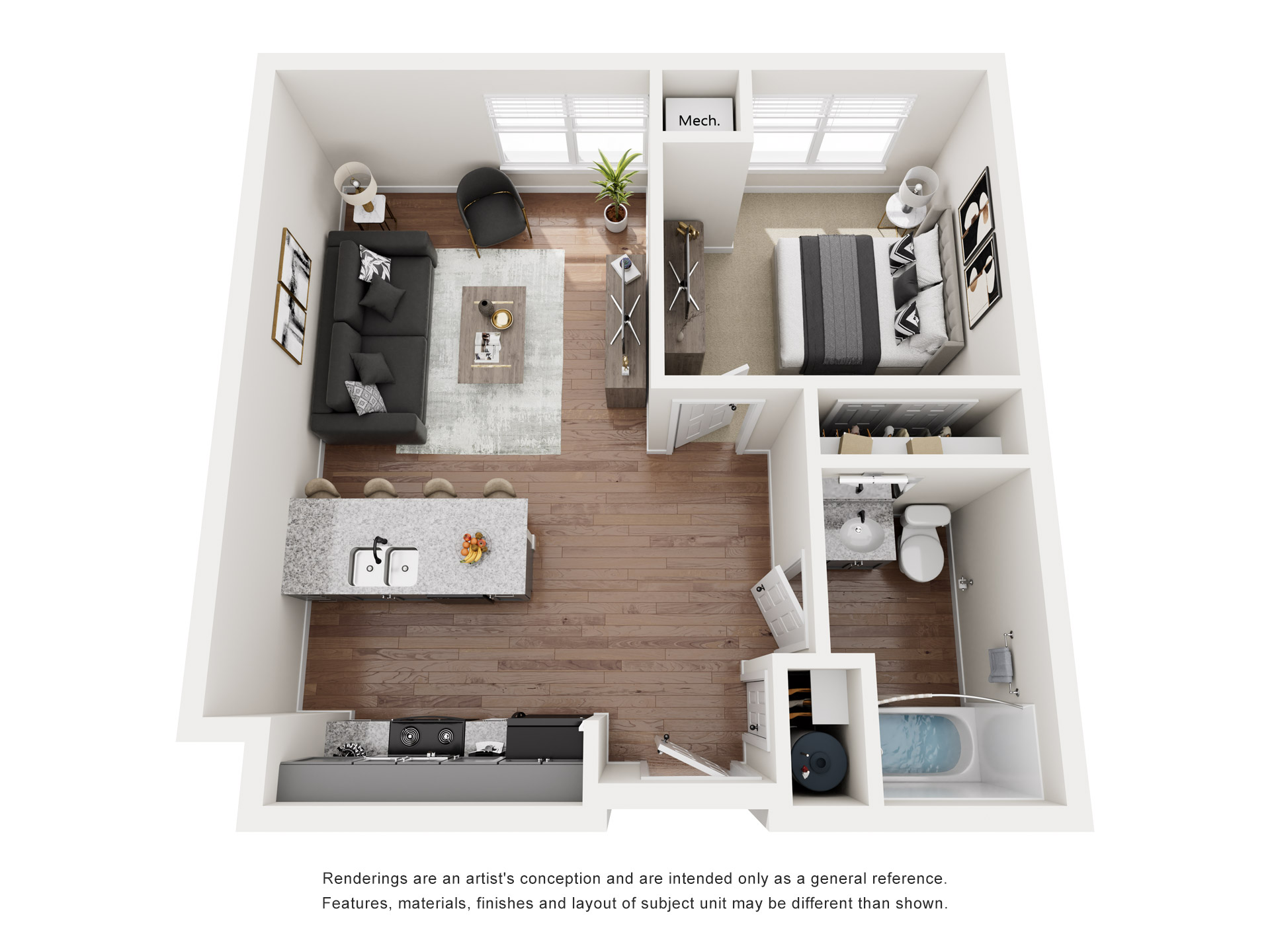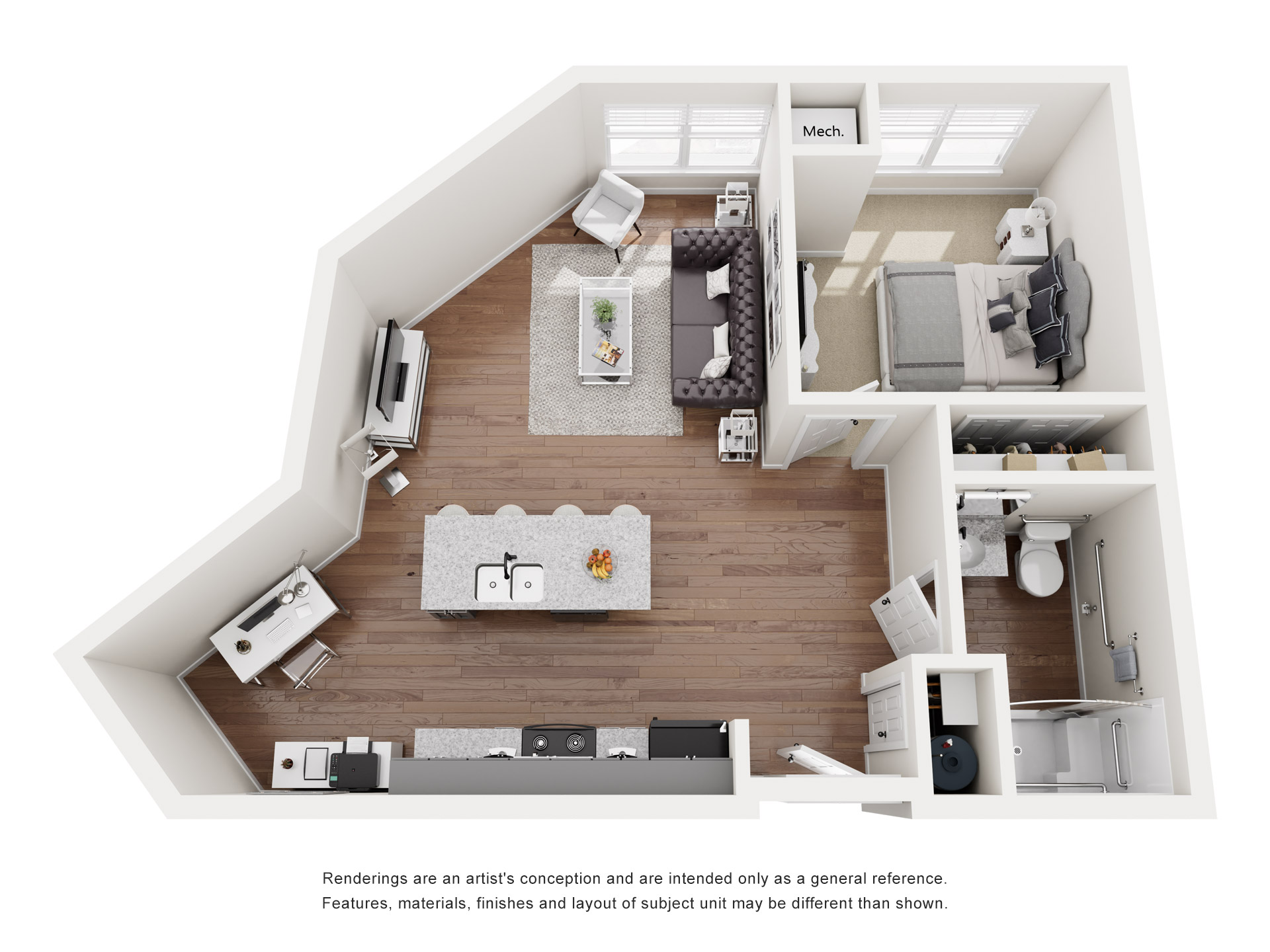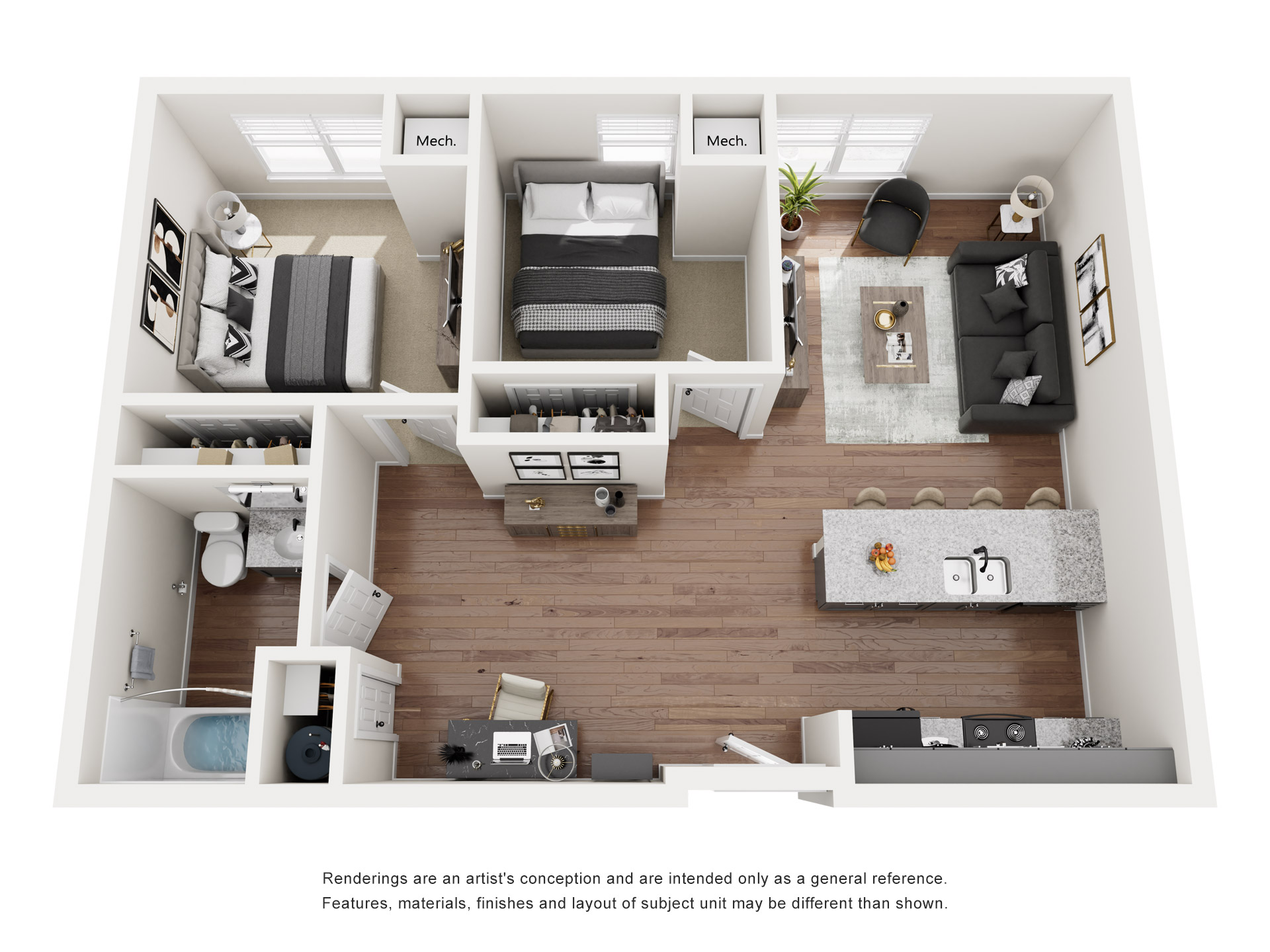 Our brand-new one, two, and three-bedroom apartment homes feature modern, fully equipped kitchens with sleek black, white, and stainless steel finishes. Each unit boasts spacious bedrooms, ample storage, and thoughtful layouts designed for comfortable living.